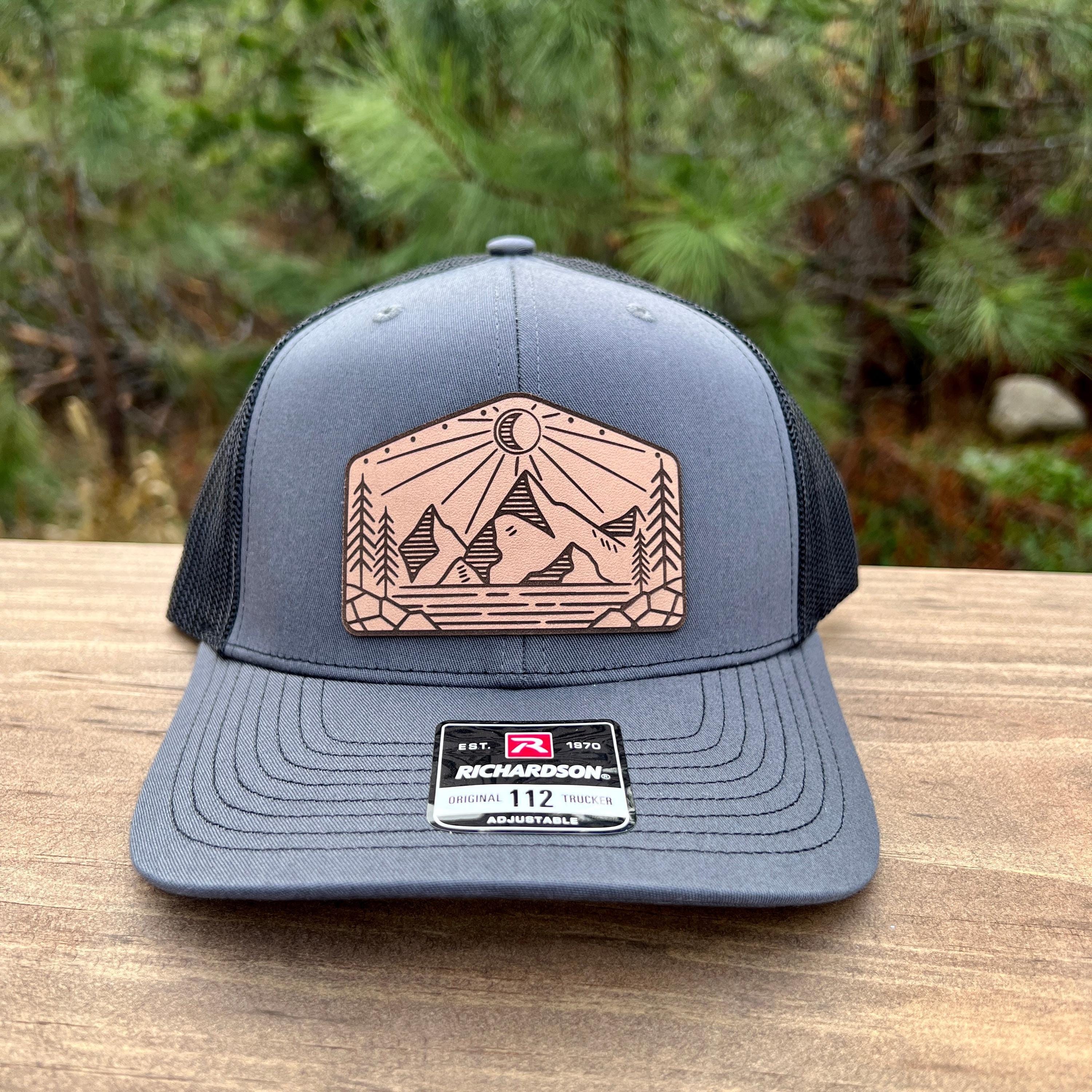 This handcrafted leather patch hat features a unique pentagon-shaped design with a detailed mountain scene, making it the perfect accessory for outdoorsmen, hikers, campers, and anyone who loves clean, nature-inspired artwork. Built with premium materials and a rugged yet modern look, this hat is ready for every adventure.