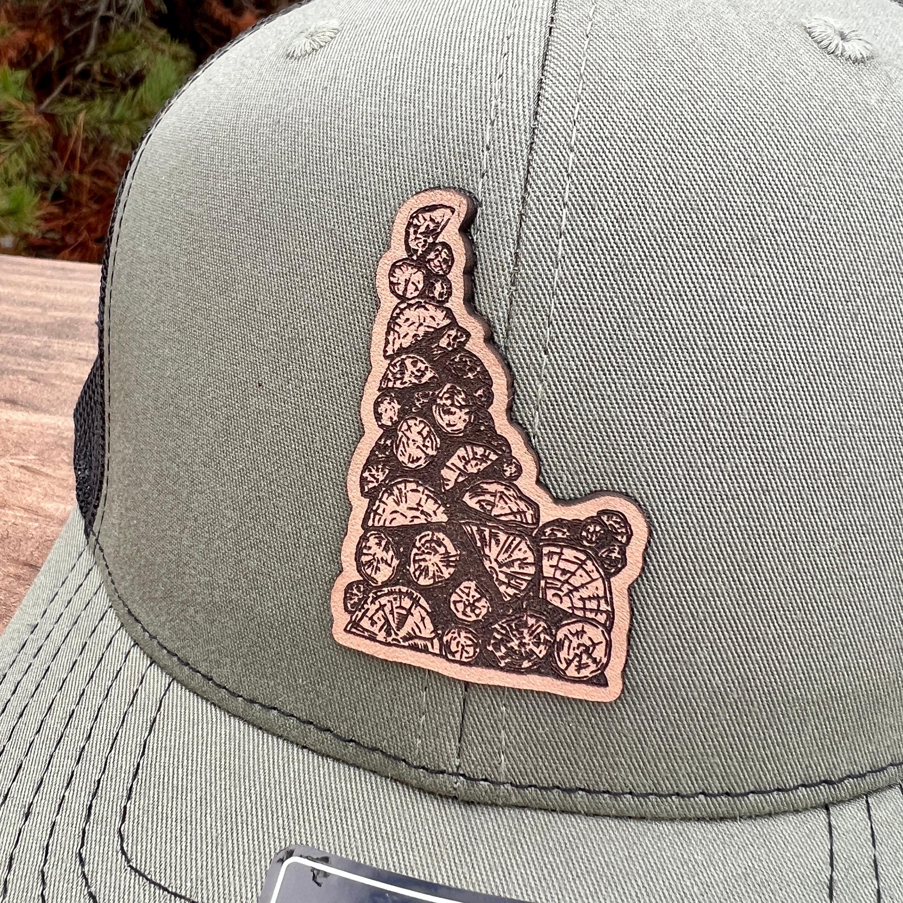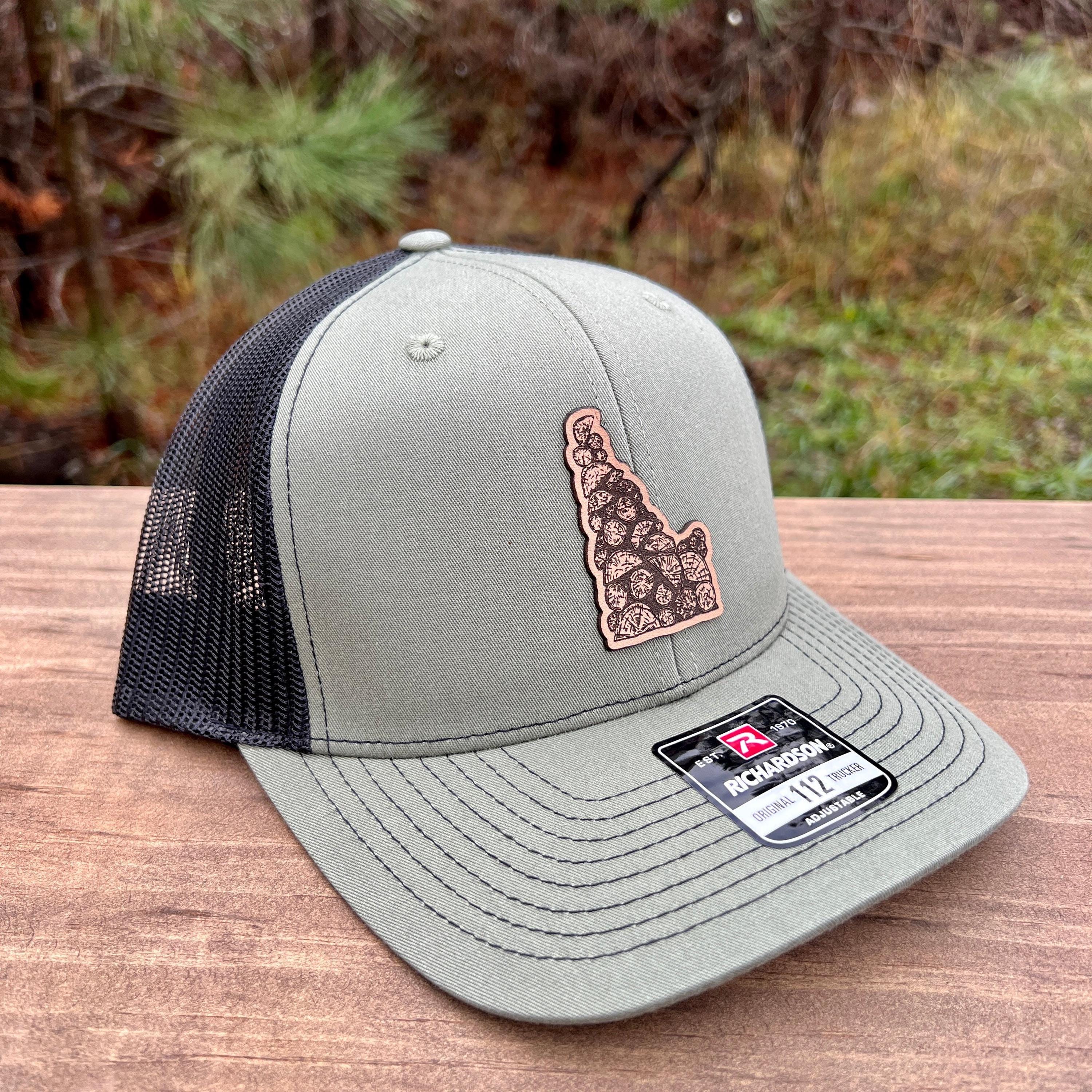 This handcrafted leather patch hat features a creative Idaho-shaped design made from stacked logs—a perfect blend of rustic charm and state pride. Built with premium materials and a clean, outdoorsy look, this hat is ideal for Idaho lovers, loggers, campers, and anyone who appreciates unique nature-inspired artwork.