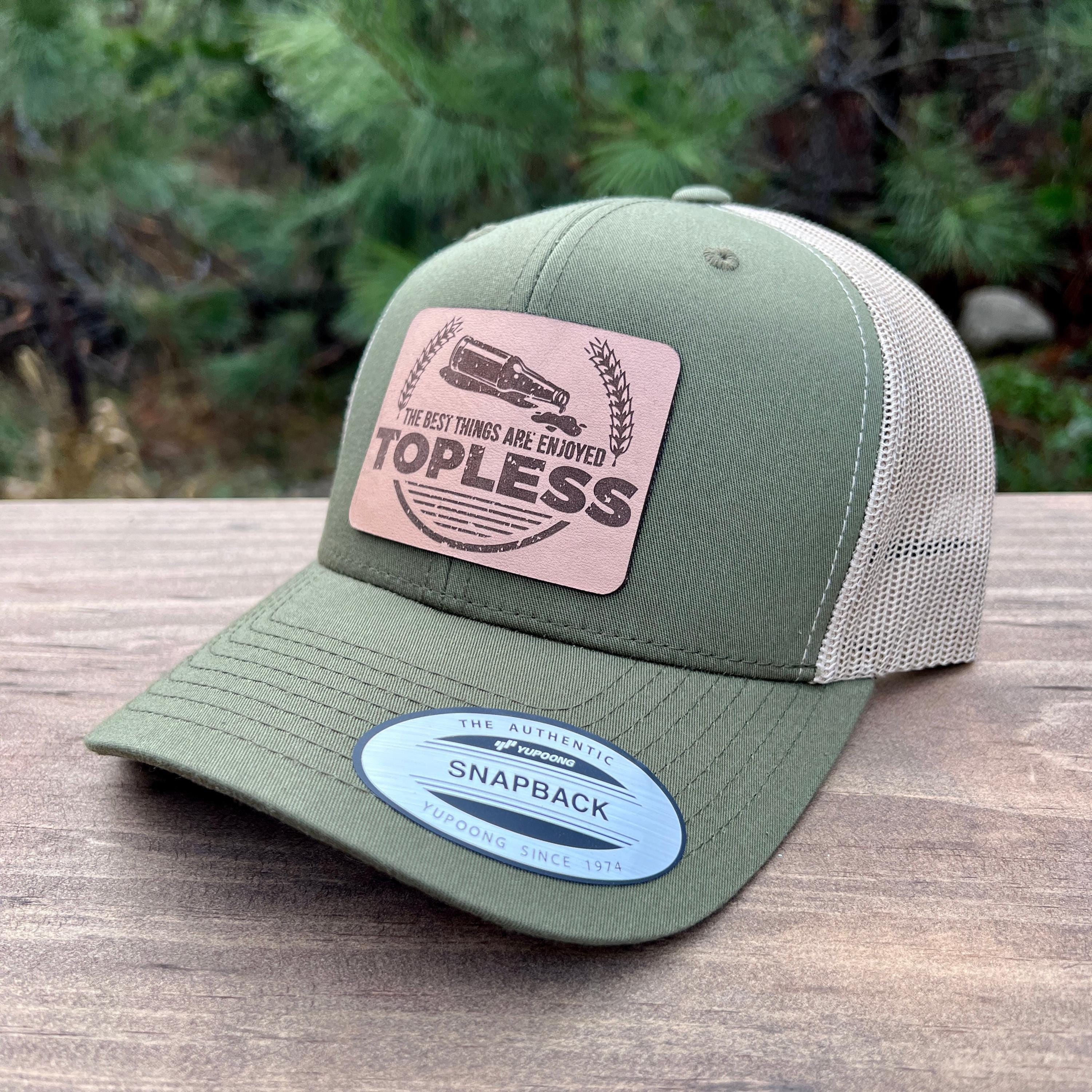 This handcrafted leather patch hat features the fun, bold phrase “Best Things in Life Are Topless,” making it the perfect humorous gift for outdoorsmen, 4x4 enthusiasts, jeep lovers, boaters, and anyone who enjoys a playful twist on adventure life. Built with premium materials and a clean, rugged look, this hat is made for everyday wear on the trail, in the mountains, or out on the lake.