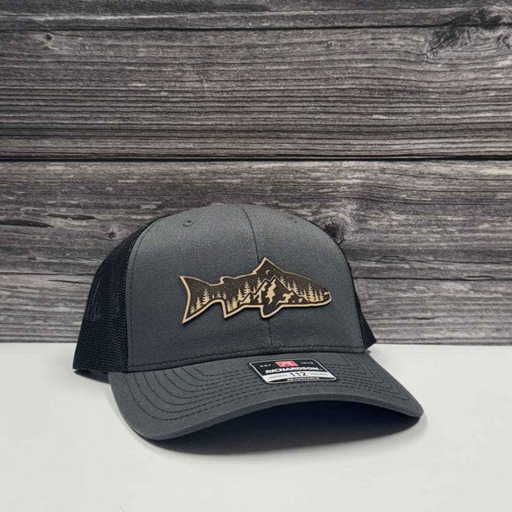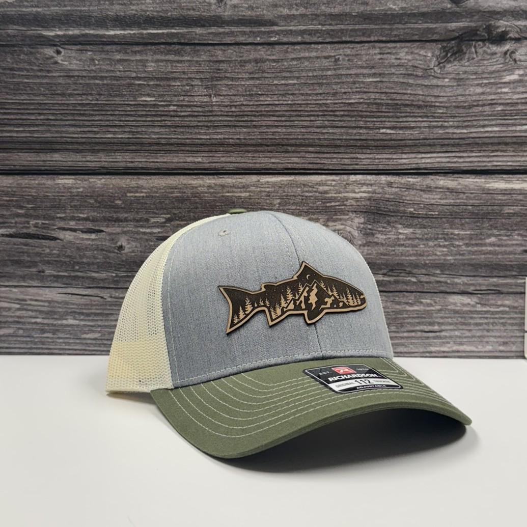 Rainbow Trout Mountain Scene Leather Patch Hat – 208 Brim Co